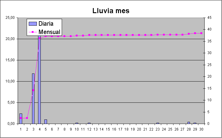 | Máximo de Lluvia: | 22,00 | 4/4/13 | |||||||||||||||||||||||||||