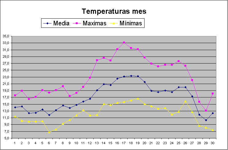 | Media del mes: | 17 | 15,84 | 1,16 | ||||||||||||||||||||||||||