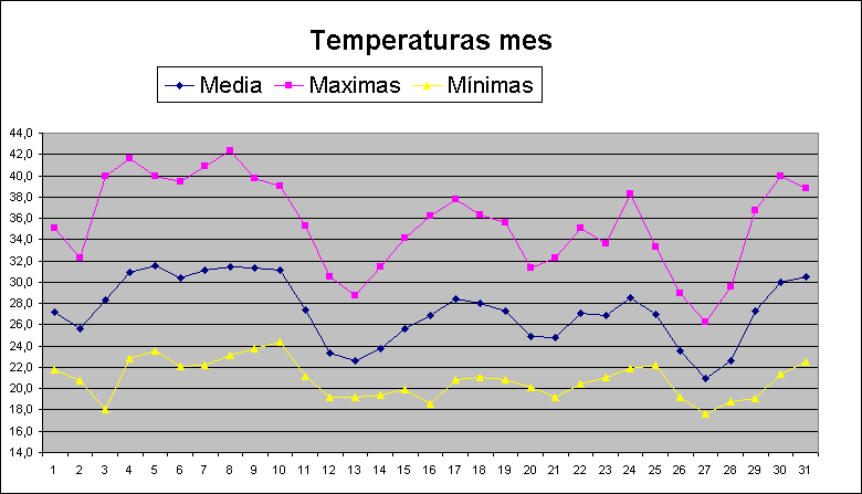 | Media del mes: | 27,3 | 27,07 | 0,23 | |||||||||||||||||