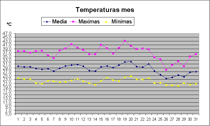| Media del mes: | 28,5 | 27,06 | 1,44 | ||||||||||||||||||