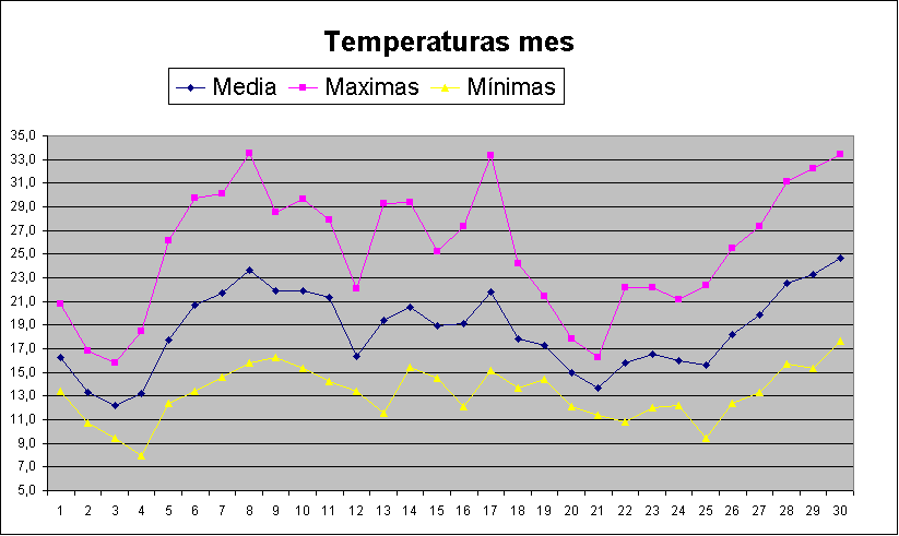 | Media del mes: | 18,5 | 15,84 | 2,66 | ||||||||||||||||||||||||||||