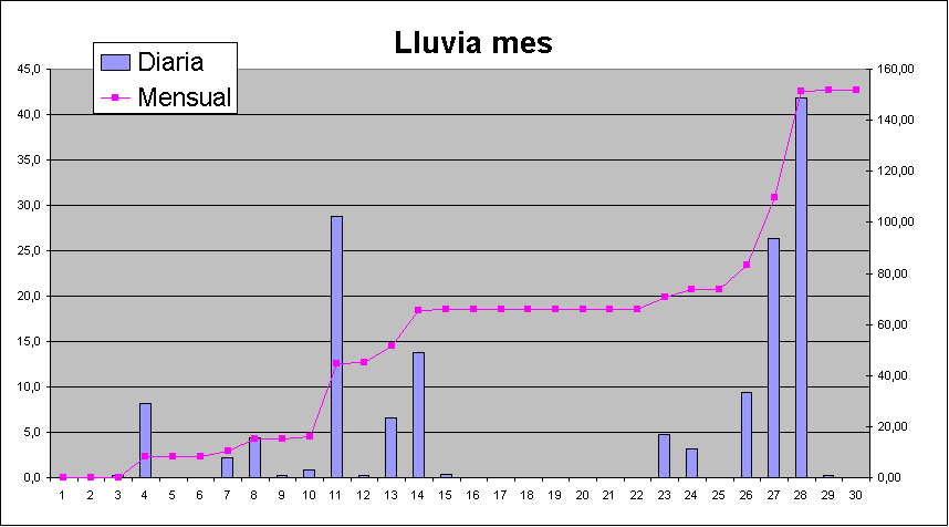 | Máximo de Lluvia: | 41,8 | 28/11/14 | |||||||||||||||||||