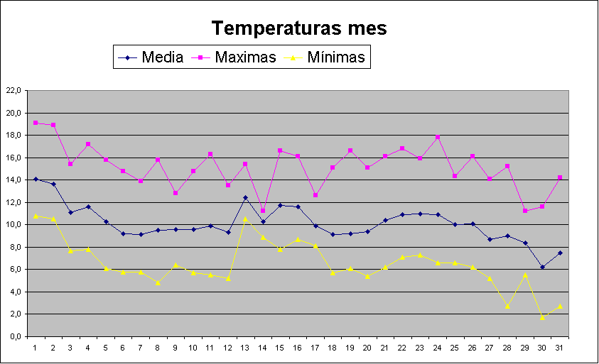 | Media del mes: | 10,1 | 10,47 | -0,37 | ||||||||||||||||||