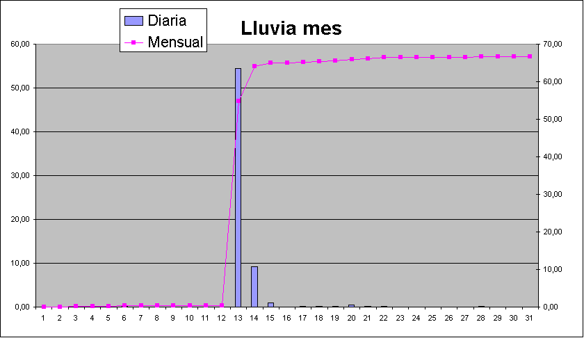 | Máximo de Lluvia: | 54,40 | 13/12/14 | |||||||||||||||||||