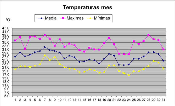 | Media del mes: | 27 | 27,06 | -0,06 | ||||||||||||||||||