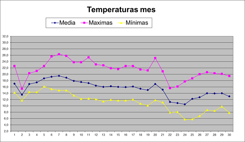 | Media del mes: | 15,5 | 13,9 | 1,60 | ||||||||||||||||||