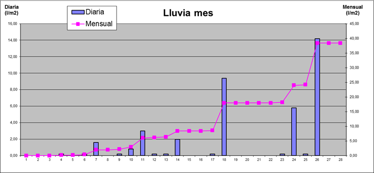 | Máximo de Lluvia: | 14,20 | 26/2/16 | |||||||||||||||||||