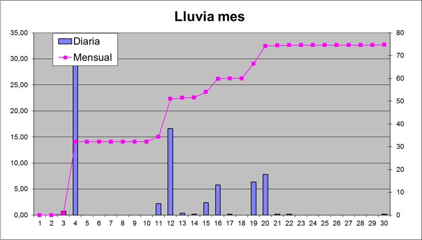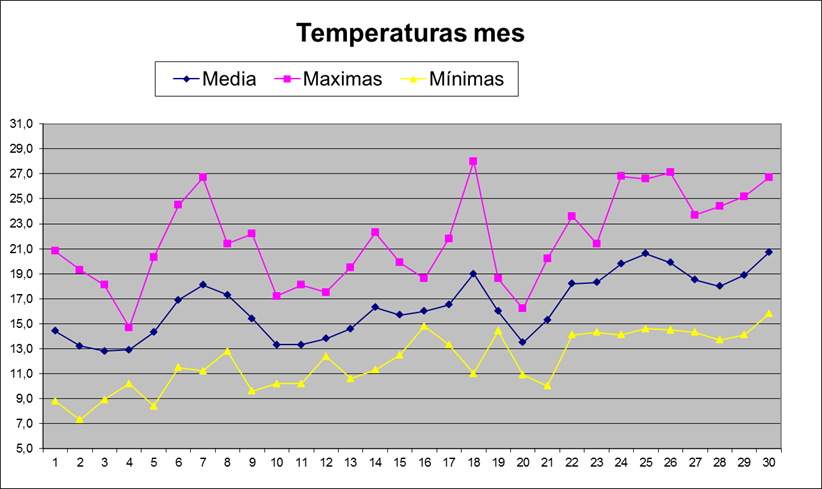 | Media del mes: | 16,4 | 15,84 | 0,56 | ||||||||||||||||