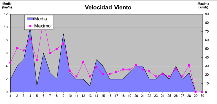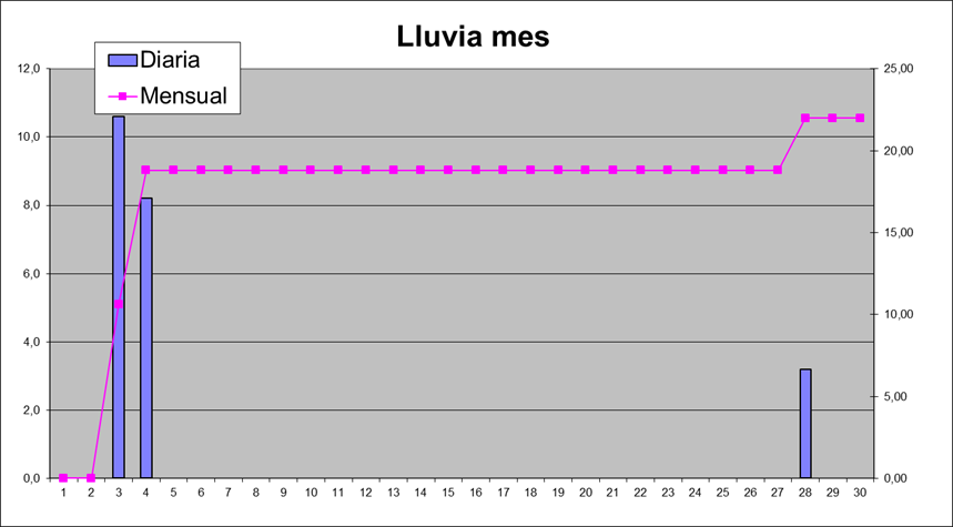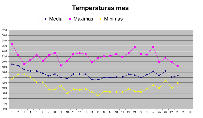 | Media del mes: | 15 | 13,9 | 1,10 | ||||||||||||||||||