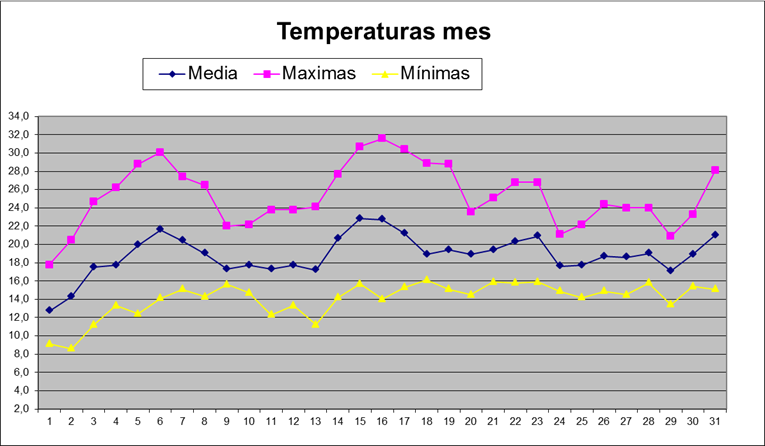 | Media del mes: | 18,8 | 19,54 | -0,74 | ||||||||||||||||
