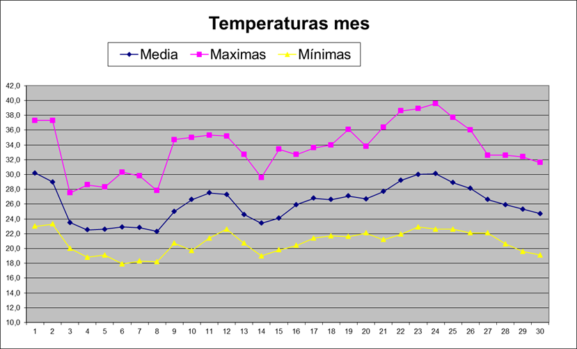 | Media del mes: | 26,1 | 24,27 | 1,83 | ||||||||||||||||||