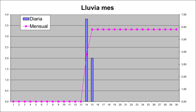 | Máximo de Lluvia: | 3,80 | 14/9/18 | |||||||||||||||||||