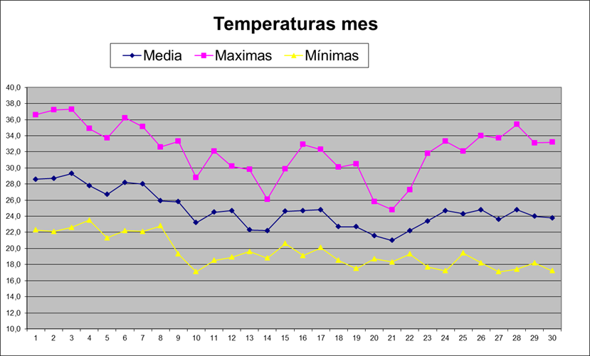 | Media del mes: | 24,8 | 24,27 | 0,53 | ||||||||||||||||||