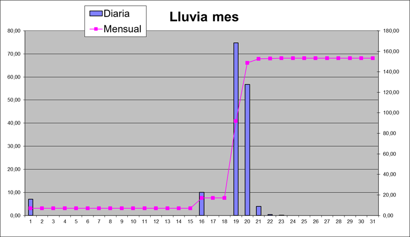 | Máximo de Lluvia: | 74,80 | 19/12/19 | |||||||||||||||||||