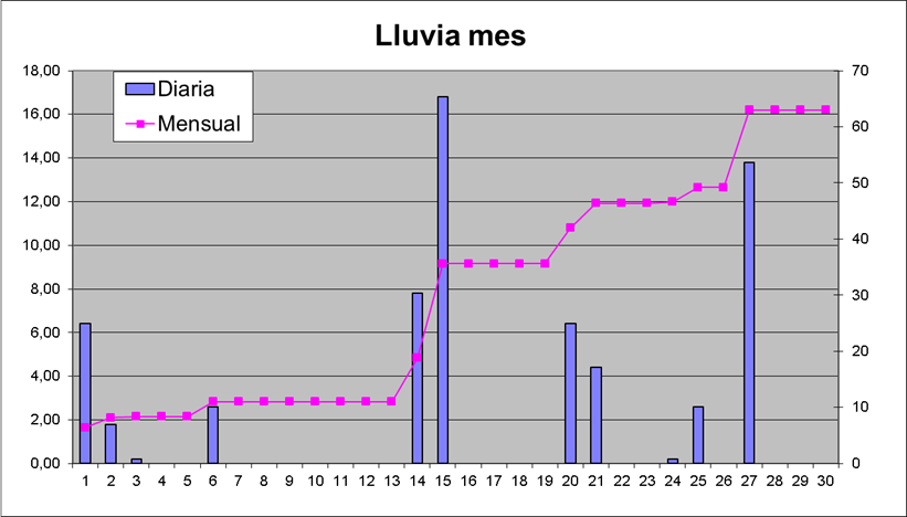 | Media del mes: | 16,6 | 15,84 | 0,76 | ||||||||||||||||