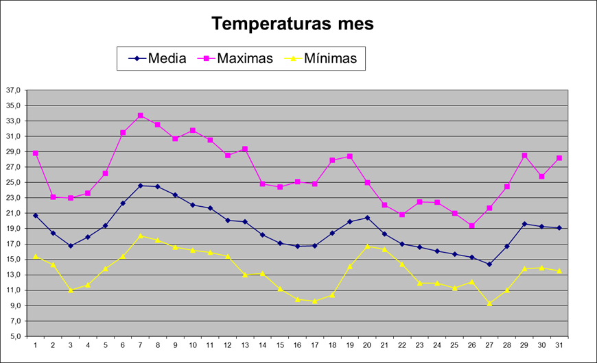| Media del mes: | 19,0 | 19,26 | -0,26 | ||||||||||||||||||