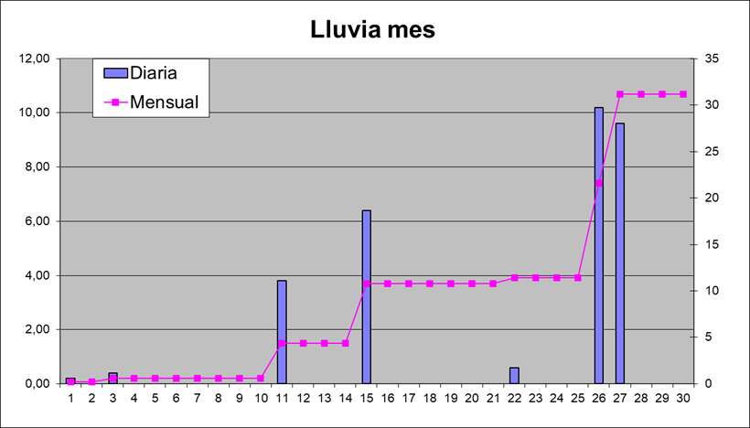 | Máximo de Lluvia: | 10,20 | 26/4/21 | |||||||||||||||||