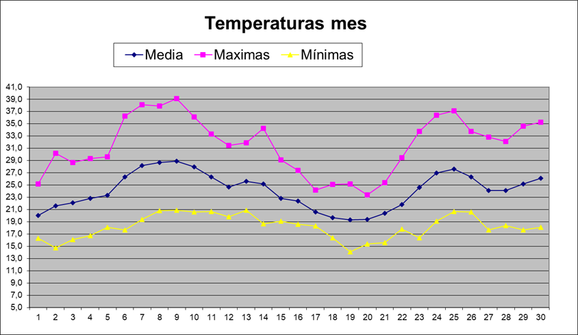 | Media del mes: | 24,1 | 23,5 | 0,60 | ||||||||||||||||