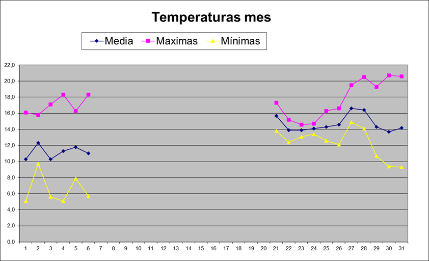 | Media del mes: | 13,2 | 10,47 | 2,73 | ||||||||||||||||||