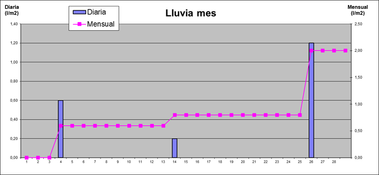 | Máximo de Lluvia: | 1,20 | 26/2/22 | |||||||||||||||||||
