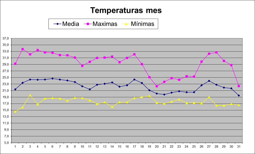 | Media del mes: | 22,5 | 19,26 | 3,24 | ||||||||||||||||||