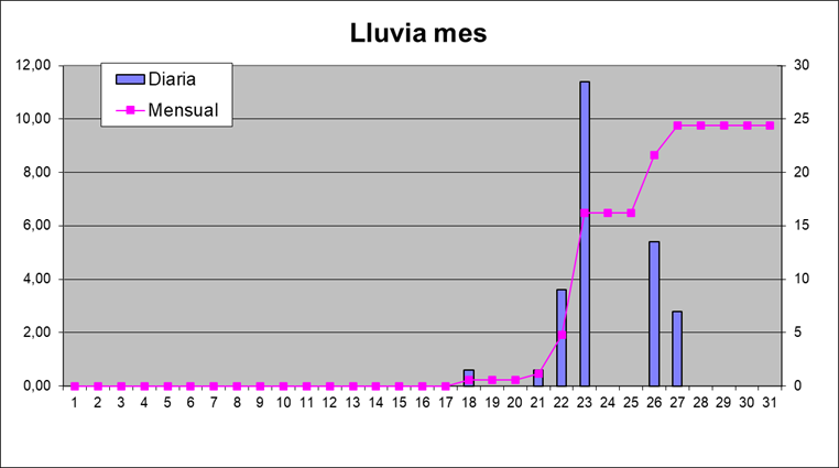 | Máximo de Lluvia: | 11,40 | 23/05/23 | |||||||||||||||||