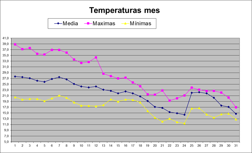| Media del mes: | 22,0 | 19,26 | 2,74 | ||||||||||||||||||