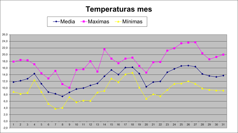 | Media del mes: | 12,8 | 10,11 | 2,69 | ||||||||||||||||||