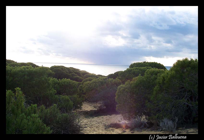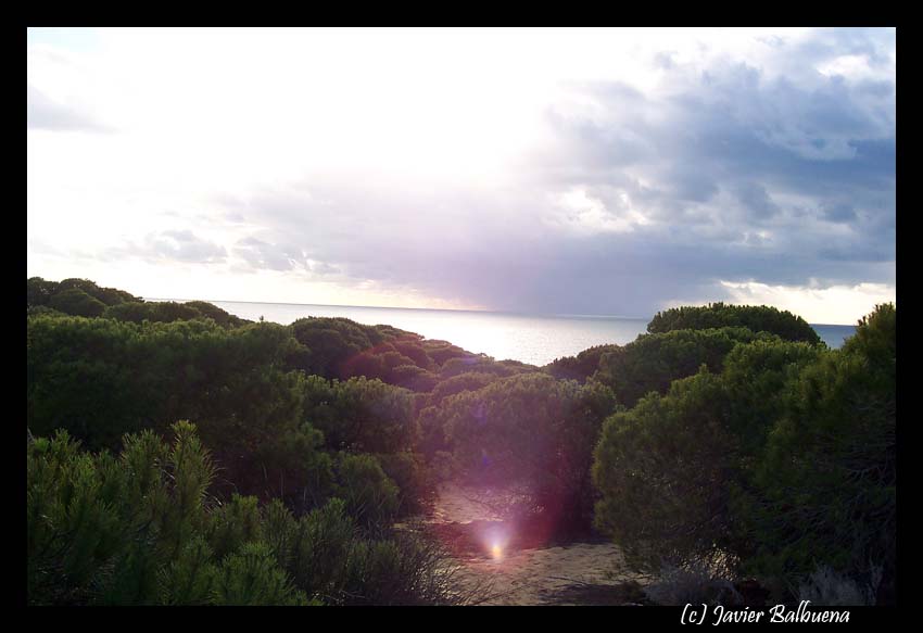 En una excursión que hicimos en Matalascañas, y desde las dunas de la playa cerca del Museo del Mundo Marino pudimos ver en principio unas nubes que descargaban sobre el mar las siguientes cortinas de precipitación: